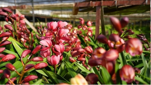 “针对消费者近年来偏爱小巧精致盆栽的趋势,我们用花期更长、色彩更喜庆的杂交兰替代了以往体型较大的大花蕙兰。”美山花卉办公室主任车丽蓉表示,这一调整收效显著,杂交兰因其花期长、花色喜庆,尤其是红色系杂交兰,已成为众多家庭采购的首选。而澳洲香水石斛兰凭借自带的淡雅香气,更受年轻消费者青睐,多用于书房、阳台装饰,省外订单占比达60%。梦香兰则以“开花量大、养护简单”的优势,成为花店批量采购的热门,单批订单量常超千盆。为保证品质,美山花卉严格执行“叶片无斑、根系健壮、花苞饱满”三项筛选标准,不合格产品直接剔除,确保送到消费者手中的都是精品。